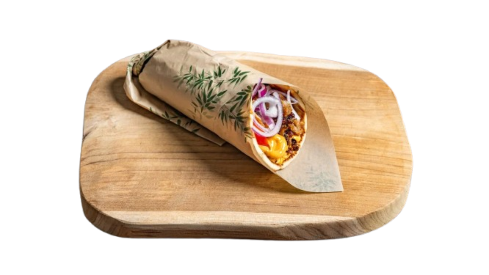 Viande marinée et grillée, servie dans un pain pita chaud avec légumes frais et sauce tzatziki.